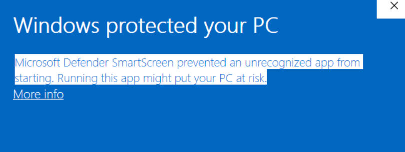 Windows: Microsoft Defender SmartScreen prevented an unrecognized app from starting. Running this app might put your PC at risk.