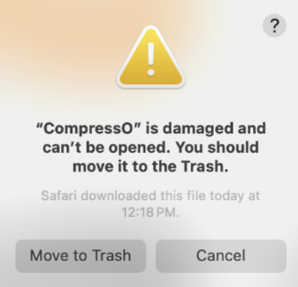 MacOS: "CompressO" is damaged and can't be opened. You should move it to trash.