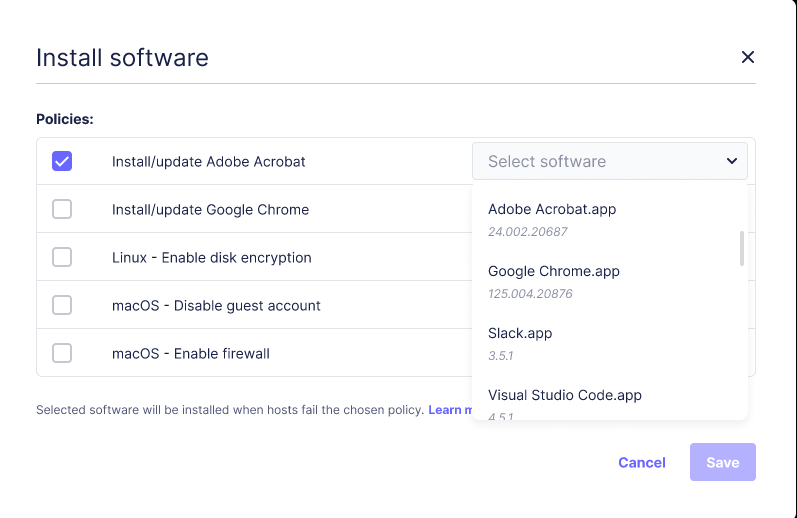 Leveraging Fleet’s ability to install and upgrade software on your hosts, you can streamline the process of controlling your hosts, replacing old versions of software and having the up-to-date info on what's installed on your fleet.